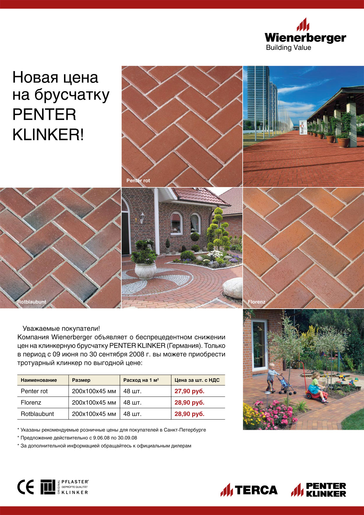 До конца 2008 года торговая сеть «ТОП ХАУС – Лучшее для загородного дома» предлагает тротуарный клинкерный кирпич от немецкого завода Penter Klinker по специальной цене.