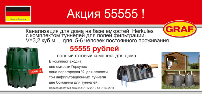 15.12.2010С 15 декабря 2010 г. в торговой сети «ТОП ХАУС — Лучшее для загородного дома» действует акция "Септики "Herkules" по суперцене":