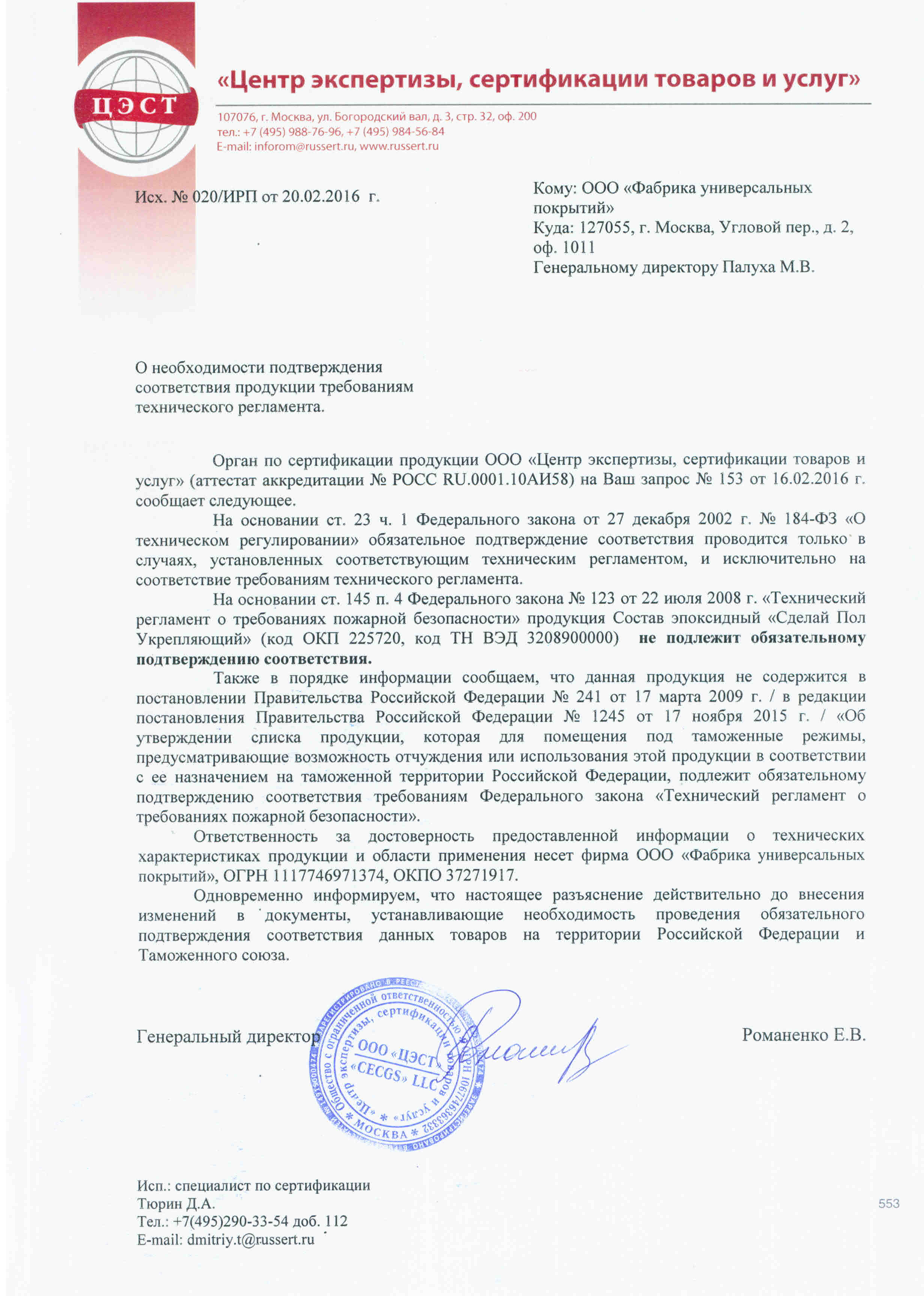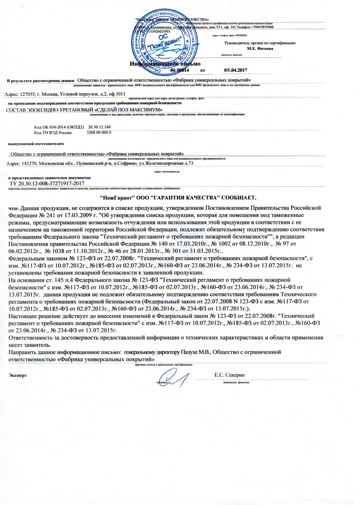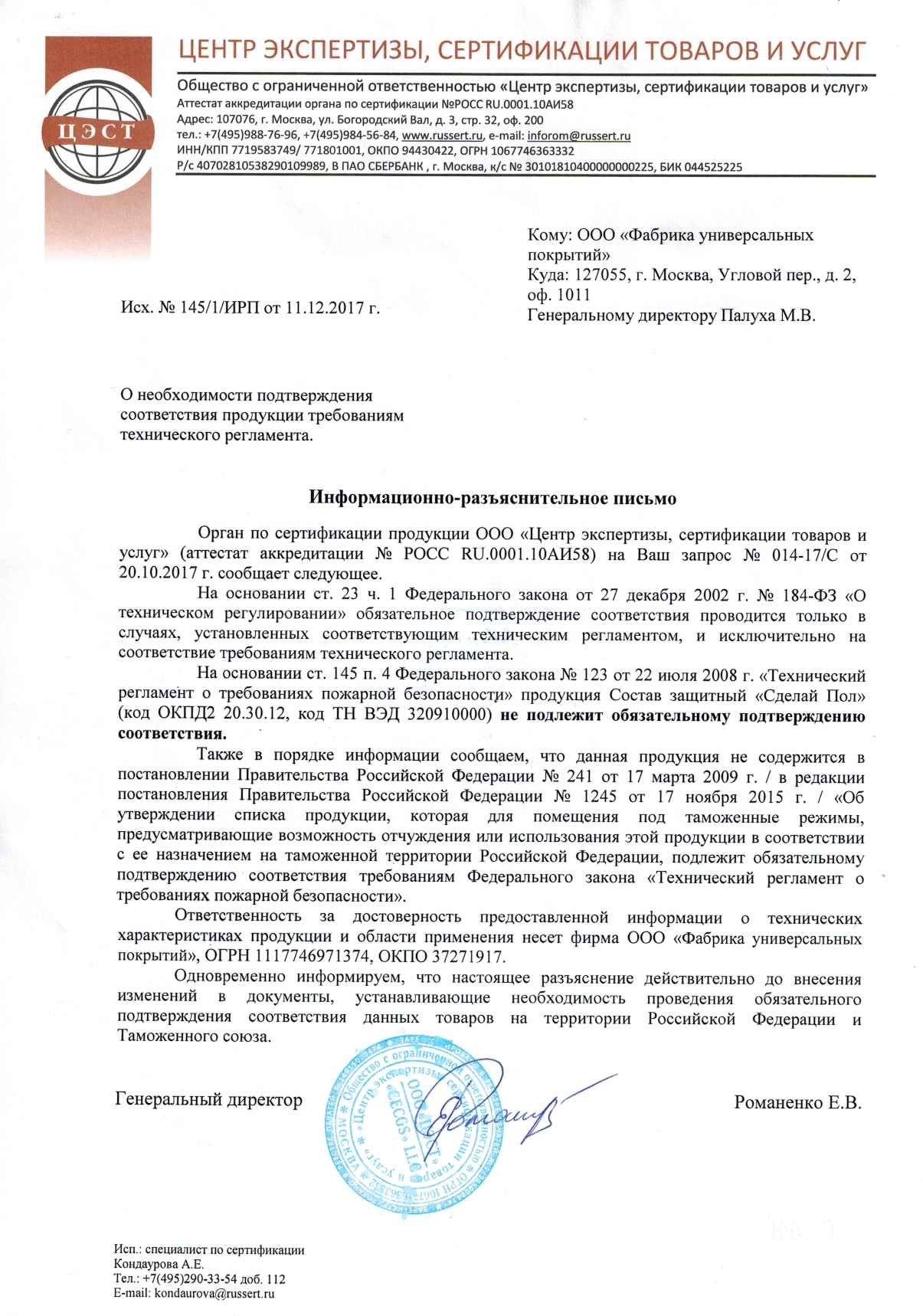 - Свидетельство Универсал
